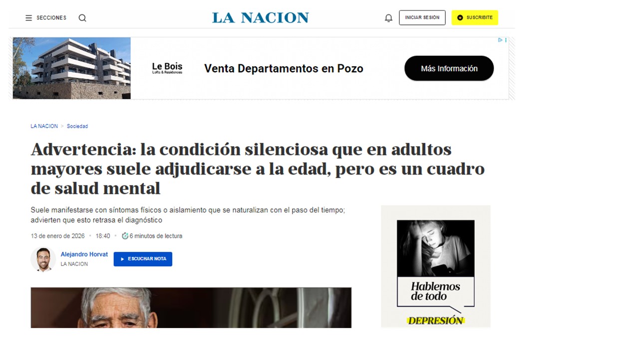 Advertencia: la condición silenciosa que en adultos mayores suele adjudicarse a la edad, pero es un cuadro de salud mental